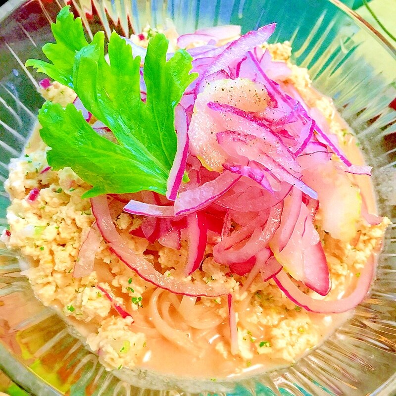 豆腐そぼろのごまだれ冷製稲庭うどん レシピ 作り方 By 嵯峨 恭也 楽天レシピ